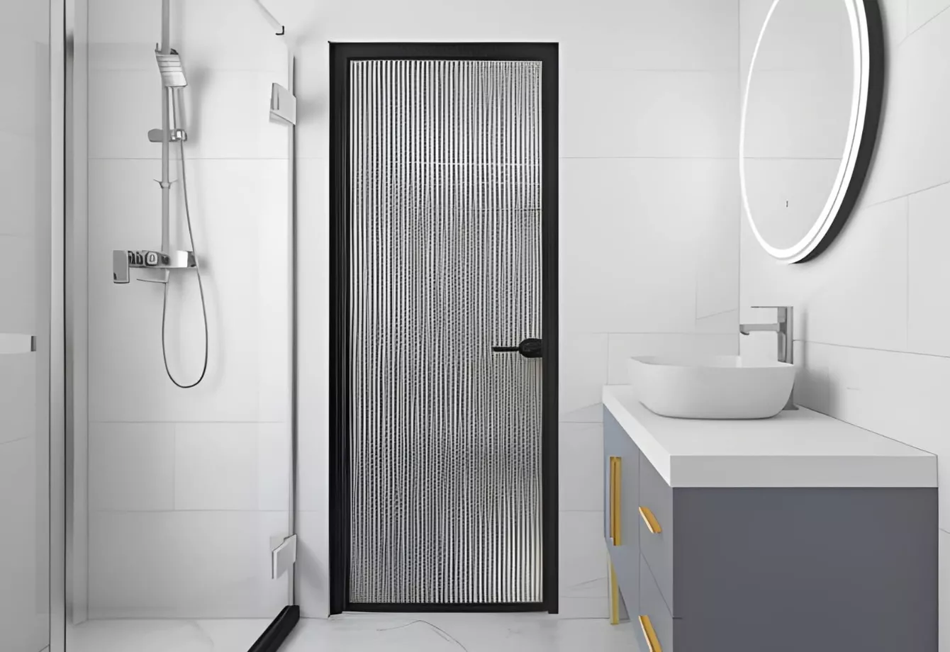 Waterproof aluminum bathroom doors with corrosion-resistant finishes and privacy glazing options.
