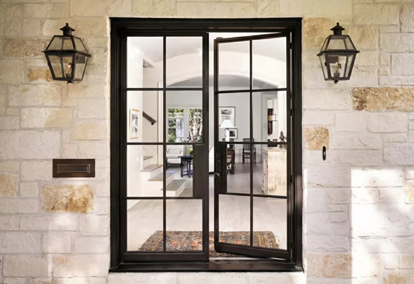 Side-hinged aluminum casement doors deliver excellent sealing and ventilation.